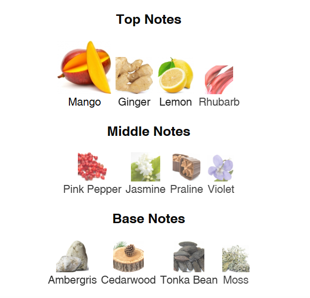 Base notes: Cedarwood, ambergris, tonka bean, moss